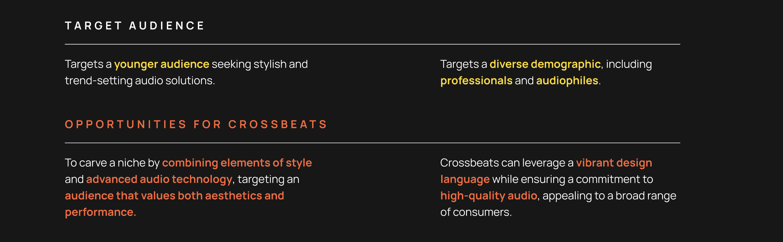 Aim for Crossbeats to stand out in the competitive landscape of audio devices.